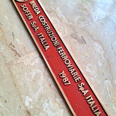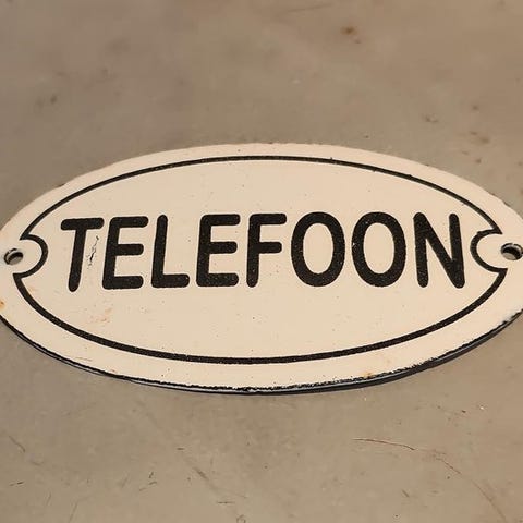 Gammelt skilt fra PNEM energivirksomheden Provinciale Noord-Brabantse Energiemaatschappij. Mål 33/23/1 cm