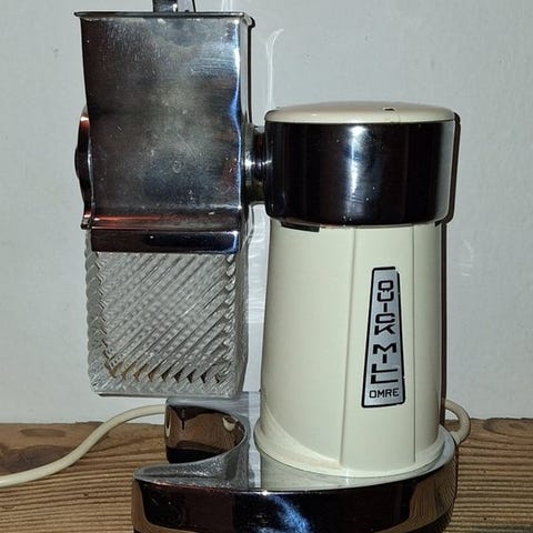 Objektet på billedet er en vintage elektrisk varmeovn produceret af firmaet Fratelli Onofri, Italien (Brescia). Fra 1950'erne; karakteriseret ved sin retrostil og en typisk blågrøn eller mintgrøn farve. Denne varmeovnen er lavet i emaljeret metal og har tre varmeelementer á 1000 watt hver. Ovnen fremstår i meget god brugt stand og bruges sjældent, og den har kun en helt lille afskalning af farven ét sted som på billedet.