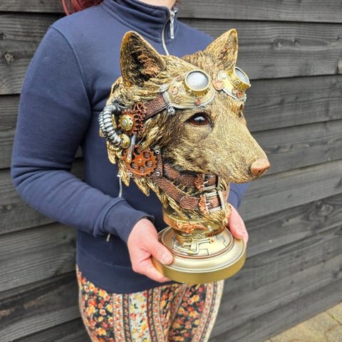 Steampunk Pestdoktor-sculptur i resin fra 2026, 20 cm bred, 16,5 cm dyb, 13 cm høj, vægt 0,7 kg, håndsigneret, fremstillet i Asien, i fremragende stand. Klik på den blå "gå til varen" knap, for at købe eller byde på denne vare. Den samlede pris vil blive vist inden du afgiver dit bud.