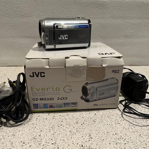 JVC Everio GZ-MG330HE HDD-videokamera med 30 GB intern harddisk, 35× optisk zoom, vipbar LCD-skærm, microSD/SDHC-slot, batteri og oplader inkluderet, testet og i meget god stand. Klik på den blå "gå til varen" knap, for at købe eller byde på denne vare. Den samlede pris vil blive vist inden du afgiver dit bud.