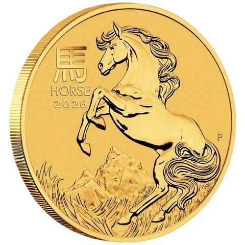 1/10 oz Australsk Lunar Series III – Året for Hesten 2026 guldmønt