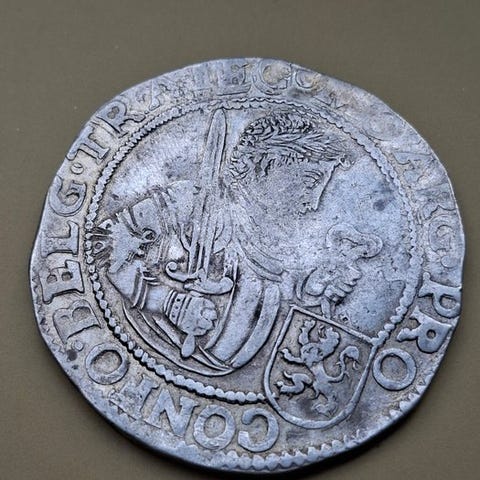 Sølv halvrigssdaalder fra 1596, præget under Rudolf II, vægt 14,30 g, Kampen, Nederlandene; tilstand ikke certifiziert. Klik på den blå "gå til varen" knap, for at købe eller byde på denne vare. Den samlede pris vil blive vist inden du afgiver dit bud.