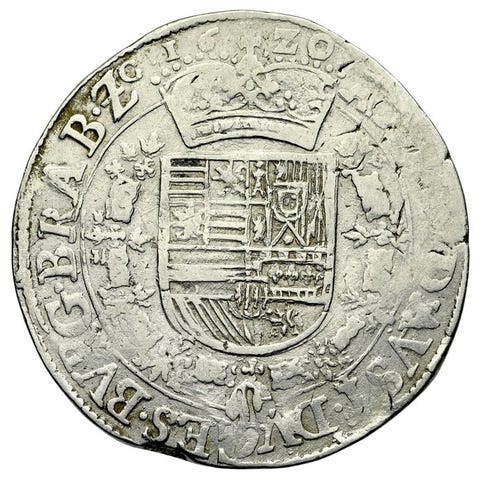 Sølv Patagon fra 1631 med Filip IV af de spanske Nederlandene, Brabant, Antwerpen, vægt 27,91 g, ikke certificeret. Klik på den blå "gå til varen" knap, for at købe eller byde på denne vare. Den samlede pris vil blive vist inden du afgiver dit bud.