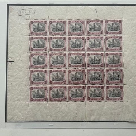 Belgiensisk frimærke, Stadhuis van Dendermonde - anden oplag - ark med 25, fra 1920, postfrisk, katalogiseret OBP/COB F182A, sjælden genstand i fremragende bevaring med enkelte små alderspletter. Klik på den blå "gå til varen" knap, for at købe eller byde på denne vare. Den samlede pris vil blive vist inden du afgiver dit bud.