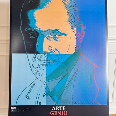 Officiel plakat til udstillingen “Andy Warhol. Fra José Mugrabi-samlingen med værker fra Fondazione Mazzotta”, Antonio Mazzotta-stiftelsen, Milano, 22. oktober 1995 – 11. februar 1996.