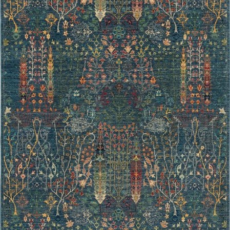 Dette tæppe er fremstillet med stor præcision af fin ren uld. Dens tætte og ensartede vævning vidner om mesterlig kvalitet. Den harmoniske farveafstemning med nuancer i beige, blå og guld gør det til et ægte højdepunkt i såvel klassiske som moderne boligrum.