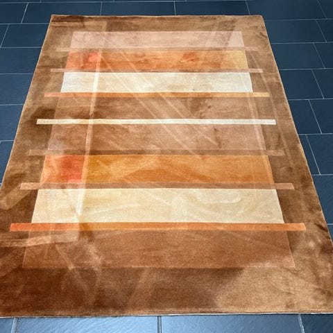 Nepalsk moderne håndvævet tæppe i uld på bomuld, mål 238 x 168 cm, oprindelse Nepal, professionelt renset og generelt i god stand. Klik på den blå "gå til varen" knap, for at købe eller byde på denne vare. Den samlede pris vil blive vist inden du afgiver dit bud.