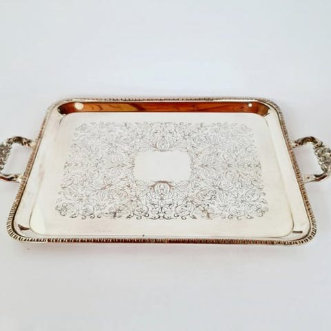 Dette elegante, oktogonale sølvbelagte hovedret-fat er en magnificient overlevende fra begyndelsen af det 20. århundrede. Stolt præsenterende en håndgravejet dato på 5-1-1918 er denne genstand mere end 106 år gammel. Den har en sofistikeret gadrooned (rebformet) kant og en forbløffende personlig monogram.
