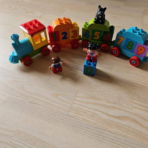 Duplo Taltog med 4 vogne og tal, Sælges som vist på billedet