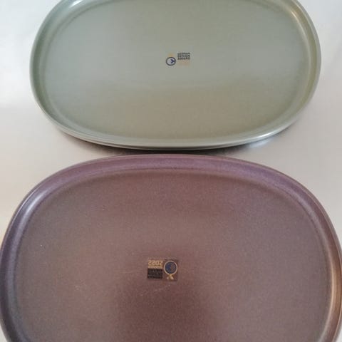 2 stk. fade sandfarvet. Måler 36x21 cm og 30x18 cm. Højde 6-7 cm.