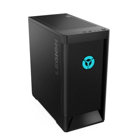 Lenovo Legion T5 stationær computer. Billederne viser en stationær pc i Legion-serien med kabinet med sidevindue og front med RGB-belysning. Opsætningen omfatter skærm, tastatur, trådløs mus fra logi tech og trådløst headset fra logi tech (skal have nye puder til ørene), gaming bord med koppeholder, og gaming stol (der er slid på nakke puden og puden til lænden de kan begges skiftes)