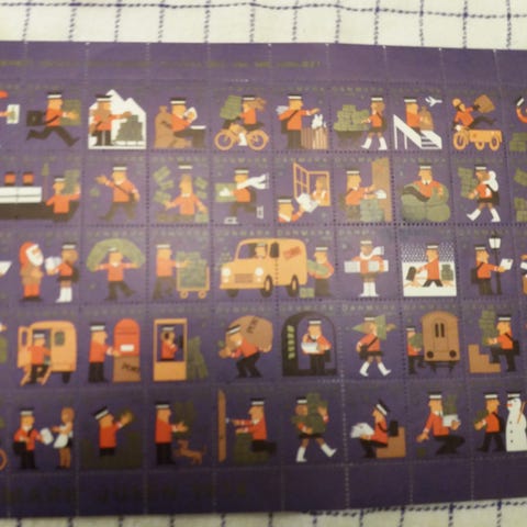 Julemærket 1974 . Ikke perforet, med lim. Viser de enkelte farver på papir + 2 farver sat sammen, osv indtil det færdige mærke En sjældenhed. Som bonus medfølger et ark perforeret ark af det færdige julemærke