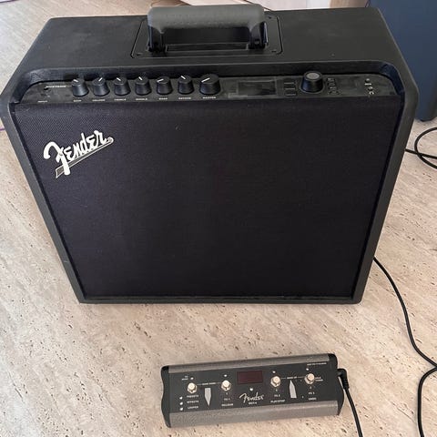 Forstærkeren har masser af indbyggede effekter (reverb, delay, chorus m.m.) og flere forskellige amp-typer, så du kan få mange forskellige lyde uden ekstra pedaler.