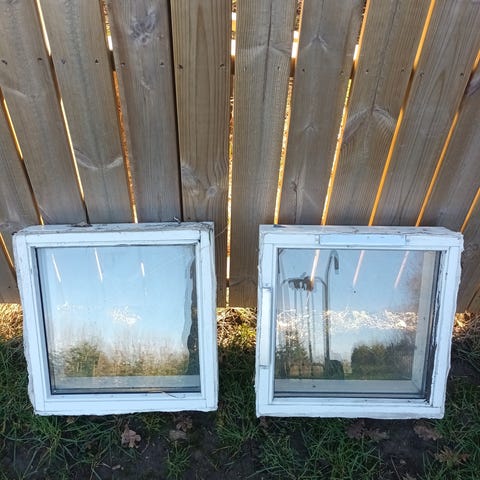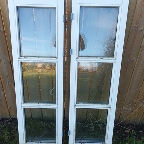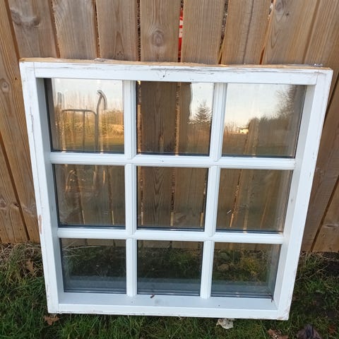 3 fags side hængt vindue bredde 137,8 cm × højde 139, 8 cm. Ingen råd eller punkteret glas. Trænger til lidt maling.