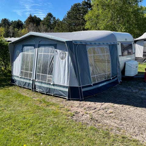 Isabella Ambassador Alpha fortelt til campingvogn. Modellen fremgår af mærkat og dokumentation som Ambassador Alpha. Forteltet har klassisk Isabella-design med mørke og lyse paneler samt klare vinduespartier. Lynlåse og kanter ses på billederne, ligesom front og sider er udført i teltdug egnet til campingbrug. Velegnet som opholdsrum ved campingvogn og til opbevaring af campingudstyr. Størrelse, årgang og specifikke mål fremgår af den vedlagte ordreseddel/label på teltet. Der er helt nyt tag se faktura der er stål stænger jeg har købt det for stort har også lette stænger merpris 1500kr