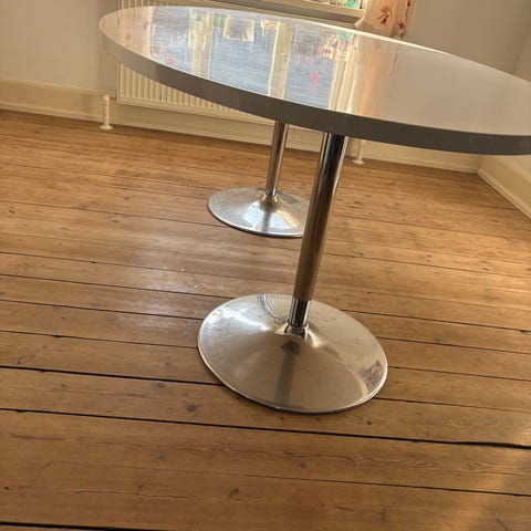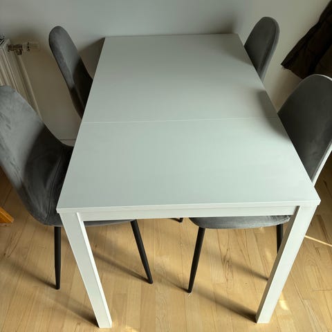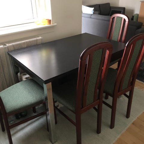 Flot sort spisebord med tilhørende 7 stole sælges. Bordet er i god stand og er pænt og velholdt.