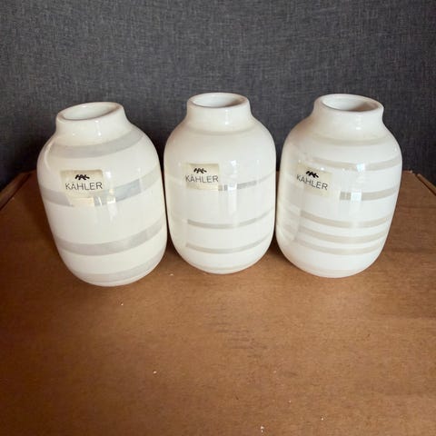Kähler vase hvid med sølvfarvede striber
