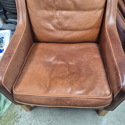 Super flot øreklapstol, som muligvis er en MH195. Jeg kan ikke finde nogen former for mærke på den, men alle dimensioner er så lig denne.