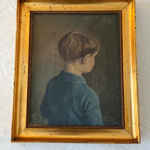 Malet på træplade og er uden ramme.