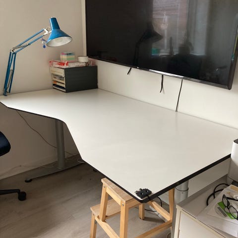 Fint hævesænkebord fra IKEA sælges - det fremstår som nyt og er uden brugsspor. Skrivebordet er med håndsving og kan blive maks. 120 cm højt.