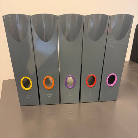 Velegnet til opbevaring og organisering af tidsskrifter, dokumenter og mapper på hylde eller skrivebord. Åben top og skrå front giver nem adgang til indholdet.