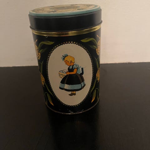 Irma hjerteformet dåse i metal i blå farve.