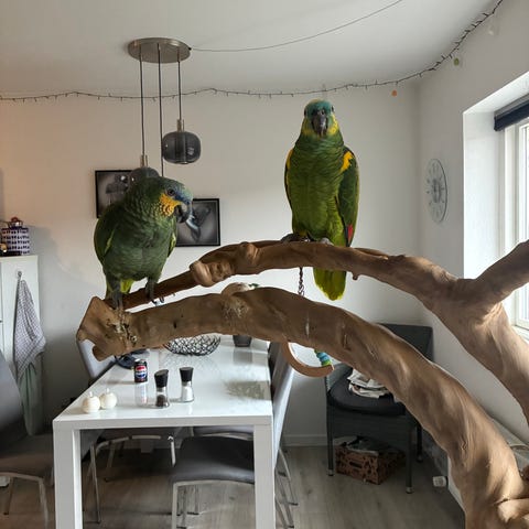 Kiwi og Elvis står og søger et nyt trygt hjem. Hos en familie som ville elske at have nogle kære fugle i deres liv. De er 100% tamme. Vi ved at kiwi er en hun men har ingen dna test på Elvis. 2 bure vil medfølge.