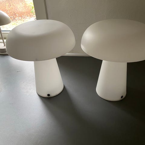 To stk genopladelige lamper hvor der er tre lysindstillinger. Oplader medfølger. Kan hænge og stå.
