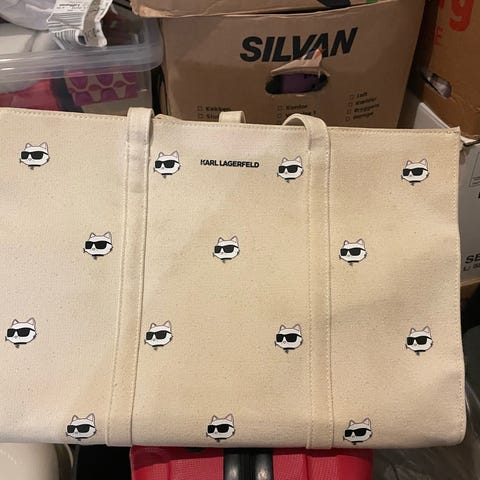 Karl Lagerfeld imiteret lædertaske i sort til unisex. Tasken er fremstillet i glat og præget læder med diskret logo-prægning på forsiden. Modellen har bærehanke og lynlåslukning foroven. Størrelsen fremgår af billederne med tommestok og gør tasken egnet som rejse- eller weekendtaske med god plads til tøj og personlige ejendele. Indvendig og udvendig inddeling kan ses nærmere ved fysisk inspektion eller yderligere billeder.