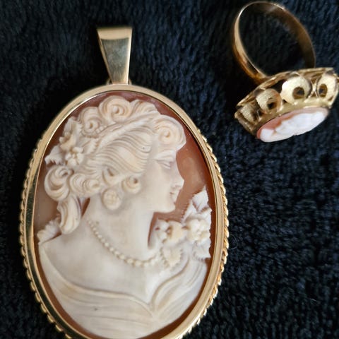 Smuk camé isat 14 karat guld. Den er som ny.