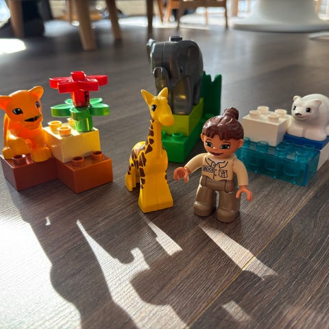 LEGO DUPLO dyrepasser zoo sæt med forskellige zoo-dyr og dyrepasserfigur. Sættet indeholder blandt andet giraf, isbjørn, løveunge og elefant samt klodser til at bygge små miljøer som isflage, klipper og zoo-indgang. Velegnet til leg med dyr og rolleleg for mindre børn.