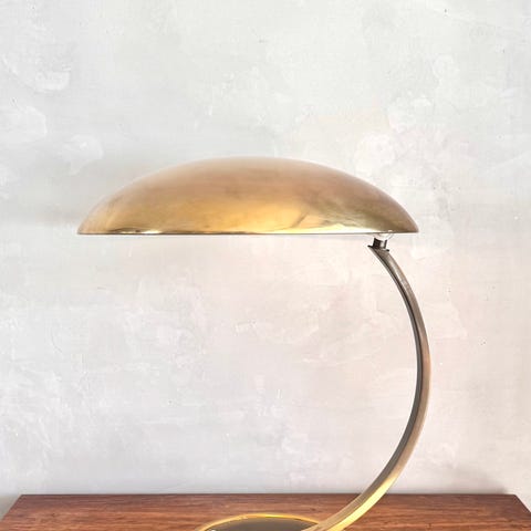 Top modellen fra Kaiser Idell fra Bauhaus mesteren Christian Dell i god stand med det brunerede messing i fin patina. Efterhånden en sjælden klassiker.