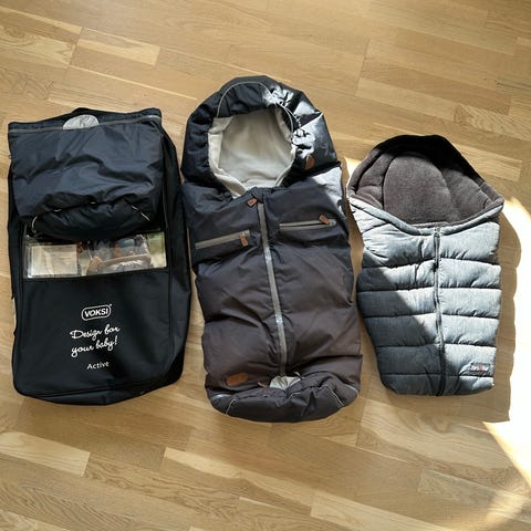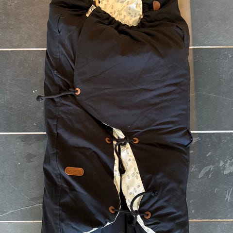 Voksi kørepose i sort med lyst, mønstret foer med små fugle. Køreposen har åbninger til seler, så den kan bruges i barnevogn eller klapvogn med sele. Ydersiden er mørk og glat, mens indersiden er blød og polstret for ekstra komfort. Posen lukkes med lynlås og trykknapper, så den kan åbnes helt op og tilpasses efter behov. Velegnet til brug i barnevogn eller klapvogn i de køligere måneder.