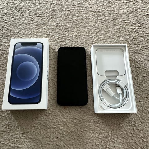 Iphone 12 Mini i sort med 128gb i god stand batteritilstanden er på 90% inkl æske og opladerkabel.