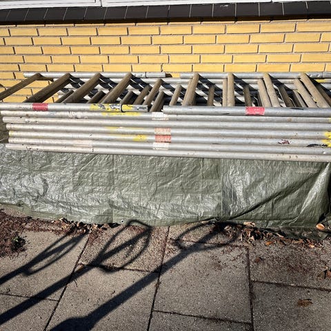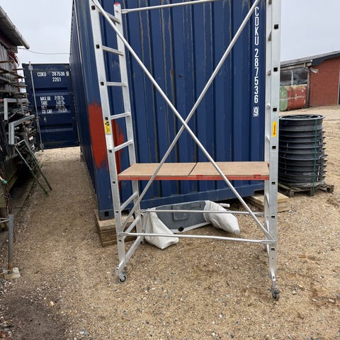Bauhaus Multistillads 6-i-1. Stilladset består af sideelementer, tværstivere og en arbejdsplatform i træ/finér. Egnet til arbejde i højden ved fx facade-, maler- eller renoveringsopgaver omkring hus og have. Kan anvendes både indendørs og udendørs afhængigt af behov og opstilling. Brugt en gang, men har stået ude siden sommer.