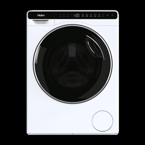 Haier frontbetjent vaskemaskine. Haier HW50-BP12307 Front-læsning, 5 kg, 66 dB, 1200 rpm, energiklasse A Vaskemaskinen har frontbetjent låge med rund glasdør.