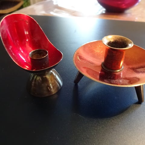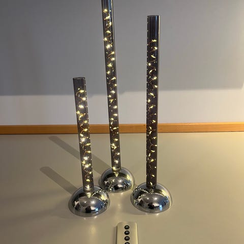 Sølvfarvet keramik lysestager . 2 Sirius røde lys