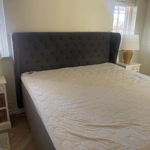 Jysk Temprakon VAI sengegavl i grå tekstil. Sengegavlen måler ca. 180x120 cm og har et enkelt, vandret quiltet design i den nederste del. Den er beregnet til montering bag en dobbeltseng og giver et polstret ryglæn, som kan bruges til at sidde op ad i sengen. Velegnet til brug sammen med kontinentalsenge eller boxmadrasser i tilsvarende bredde.