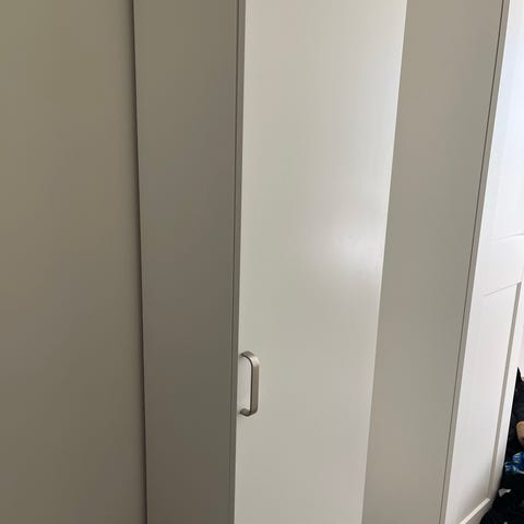 Jeg sælger en låge fra ikea til pax skab på 236 cm høj og 50 cm bred. Jeg tror det er en udgået model. Den har nogle mærker fra nogle klistermærker, tror jeg.