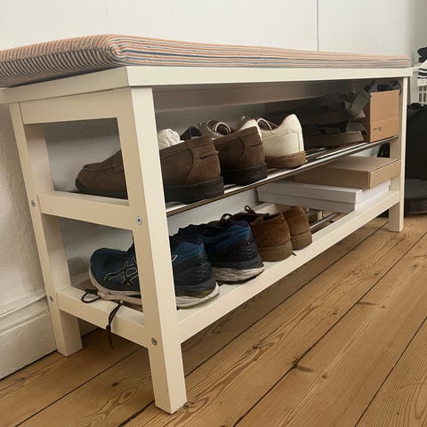 Bænk med opbevaringsrum og plads til sko