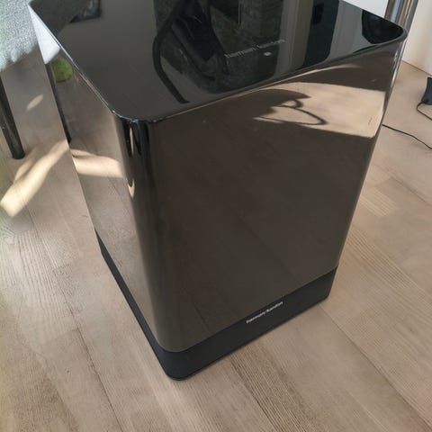 Panasonic subwoofer i sort kabinet. Enheden har frontmonteret basenhed og indbygget strømforsyning med fast netledning. Egnet som ekstern basenhed til hjemmebiograf- eller stereosystem, hvor der ønskes ekstra basgengivelse. Modelbetegnelse og tekniske specifikationer som effekt og impedans fremgår af mærkaten på undersiden af enheden.