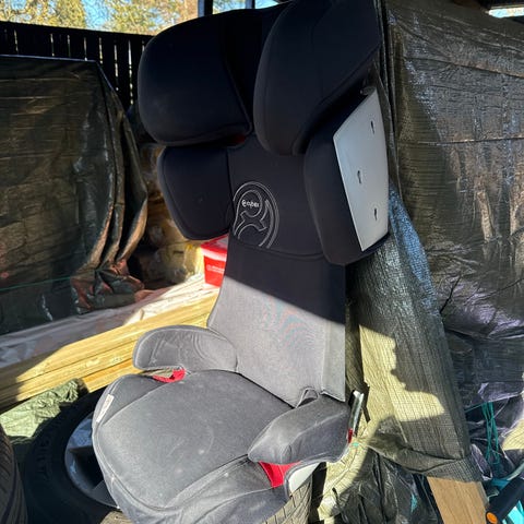 Har ikke været i uheld. Betrækket trænger til vask, derfor den lave pris. Men funktionen af den er stadig super.
