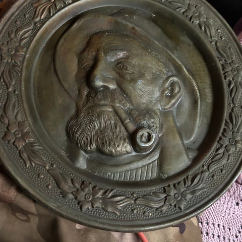 Støbejernsplade muligvis med Frederik IV og dronning Louise. Står anno 1724