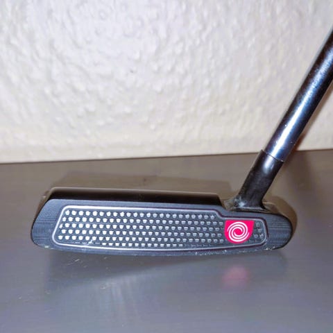 Golf putter med metalhoved og todelt hvid/sort slagflade. Skaftet er i metal med lige form, og grebet er i et mørkt materiale. Velegnet til putting på golfbanen eller til træning derhjemme. Længden fremgår af billederne, da der ikke er angivet specifik målangivelse.