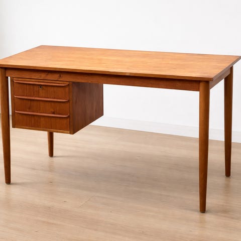 Vintage Teak skrivebord med fire skuffer
