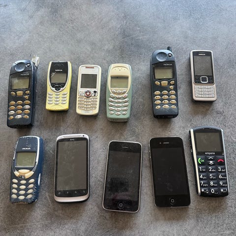 Gamle mobiltelefoner med lader 100 kr stykket