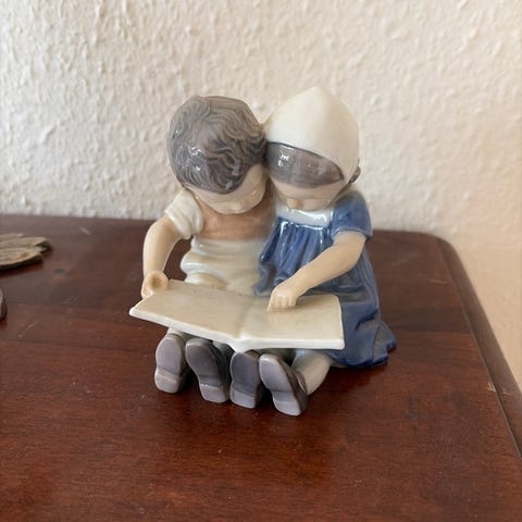 Bing og Grøndahl figur børn læser porcelæn blå/hvid