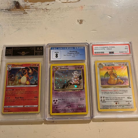 Sælger de her pokemon kort, der kan godt forhandles om prisen ved køb af flere kort. Jeg har mine priser fra PriceCharting og standen på kortene er forskellige.