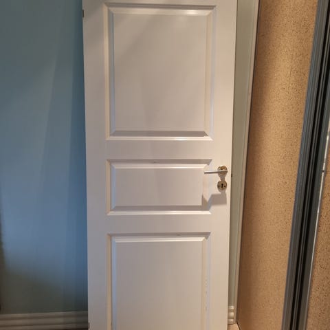 Der er mindre brugsspor langs kanter. Sælges med monteret dørgreb og låsekasse.
