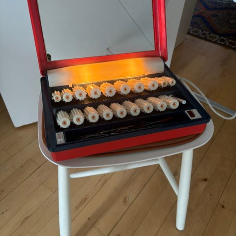 Tænder og varmer, 19 curlers, og 14 hårclips.